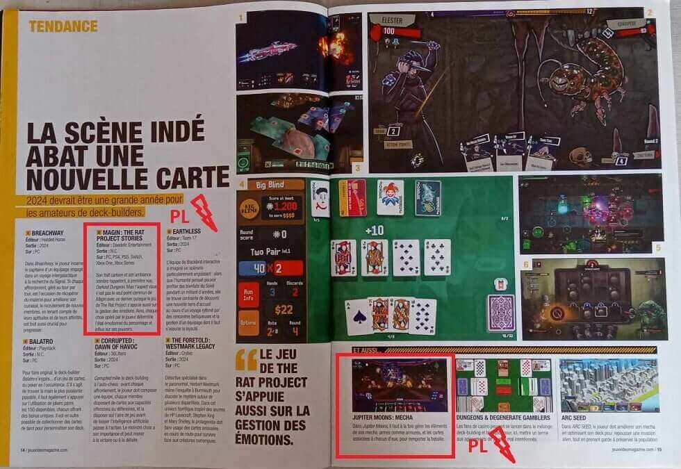 Co do polskich akcentów, tym razem nie jest za bogato. W artykule o grach karcianych, wśród propozycji do ogrania w 2024 roku wymienione są dwa indyki warszawskich zespołów: Magin: The Rat Project Stories teamu The Rat Project i Jupiter Moons: Mecha od Rock&Bushes. Z właścicielem tego drugiego studia rozmawiałem dwa lata temu na Pixel Heaven i nawet trochę pograłem w Jupitera. Nie pamiętam za bardzo zasad zabawy, ale grafika była rewelka! Innym „polskim” tytułem (piszę w cudzysłowie, bo właściciel Buckshot Software – Jakub Wcisło – mieszka aktualnie w Niemczech), opisanym w rubryce „wczesny dostęp” jest boomer shooter Project Warlock II. I to by było na tyle jeśli chodzi o gry z kraju nad Wisłą.