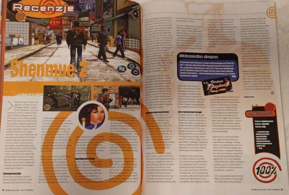 Redaktorem naczelnym Dreamcast Extreme jest Przemysław [Majk] Małecki, który podszedł do tematu trochę inaczej niż autorzy poprzednich wydań specjalnych. Publicystyka! W oczy rzuca się niesamowita wręcz liczba materiałów publicystycznych, nazwanych tu dowcipnie Makaronami, których jest aż 35! Oczywiście z natury rzeczy są one krótsze, z reguły 1-2 stronicowe, ale za to poruszanych tematów jest całe mnóstwo. Mnie to osobiście bardzo pasuje. Co my tu mamy: analiza upadku DeCeka, akcesoria znane i nieznane, klony i piraty, fenomen karty VMU, związki „Makarona” z Xbox-em (?!), pojedynek Dreamcasta z PS2, współczesne gry na DC, erotyki, historia serii Shenmue itd. Ktoś powie, że taki zalew tematów sprawia, że omawiane są po łebkach. Pewnie niektóre tak, ale jak będę chciał się wgryźć głębiej w temat to zerknę sobie do sieci, a dzięki niewielkiej objętości artykułów jestem w stanie przeczytać je w całości podczas pojedynczego posiedzenia. Kto wciąż patrzy na zegarek, doceni takie rozwiązanie.