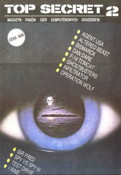 Top Secret nr 2 zdążył ukazać się jeszcze przed końcem 1990 roku. Z przyjemnością informuję, że doczekał się wpisu w encyklopedii pism Zapachu Papieru. Na jego podstronie możecie przeglądać stopkę, indeks gier i spis treści, pooglądać grafiki, przeczytać wstępniak. Co nieco przeczytać można w Ciekawostkach.