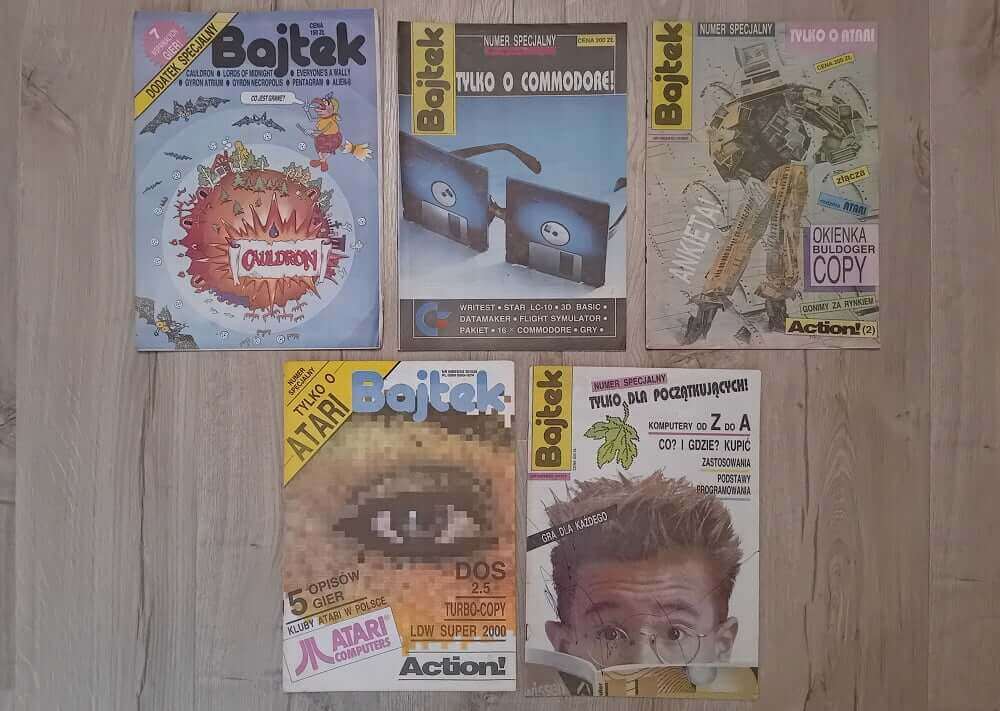 Pięć numerów specjalnych Bajtka z 1988 roku przeglądnąłem przy okazji porządkowania zbiorów. Są to wydania o Atari (dwa numery), Commodore, dla początkujących i grach (7 wspaniałych gier). W sumie ukazało się siedem numerów specjalnych Bajtka (dodatkowo 9 gier i nr 135) i wszystkie mamy w zasobach Zapachu Papieru. Przypomnijmy wspomnianą piątkę. Dodatek Tylko dla początkujących…