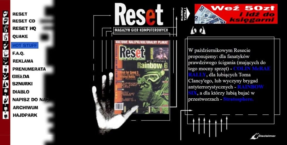 W maju 1997 roku miała miejsce premiera magazynu Reset. Redaktorem naczelnym periodyku został Jacek [User Jama] Marczewski, a jego zastępcą Piotr [Micz] Mańkowski. Poza tym redakcję tworzyli w większości redaktorzy Secret Service, którzy zwiali z „sikreta” po tym, jak się dowiedzieli od Usera Jamy i Micza, że się kroi nowe pismo. Po jakimś czasie uruchomiono stronę domową pisma www.reset.com.pl, a w nim Hajdpark – chat czytelników „na żywo”. Przez chwilę było miło, a potem się zaczęło…
