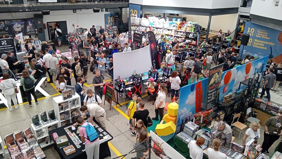 Odwiedzający. Jak zwykle najwięcej było nerdów, czyli takich jak my, ale widziałem też sporo rodzin z dziećmi. Te okupywały rzecz jasna wszelki sprzęt grający. Dominował język polski, ale słyszałem również angielski, ukraiński i… włoski. Więcej luzu w korytarzach pozwoliło na łatwiejsze wyławianie znajomych twarzy, stąd udało mi się namierzyć większość obecnych na targach kumpli i ludzi z branży. Zaledwie paru uroniłem (Kroogera – latał zabiegany, Śledzia czy Waldemara Siwińskiego – był kurczę!).