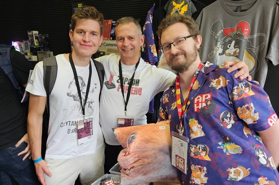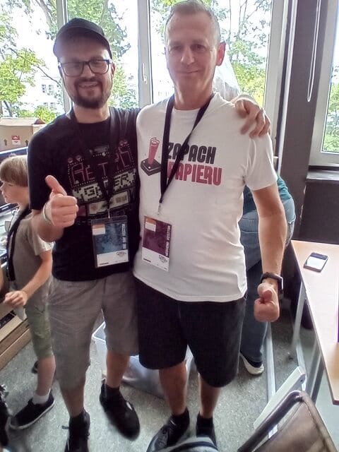 Goście specjalni. W tym roku nie widziałem wielkich kolejek do gości z zagranicy. Ci, którzy byli już kolejny raz, trochę się opatrzyli (może poza Jussim Koskelą, który choćby z racji współprowadzenia turnieju Deluxe Ski Jump znajdował się w centrum uwagi), nowi nie wzbudzali takiego zainteresowania jak kiedyś Éric Chachi czy Jordan Mechner. Przechodziliśmy kilkakrotnie obok ludzi i stoisk wydawnictwa Fusion Retro i magazynu Fusion – świeciły pustkami. A Hansa Ippischa po prostu nie spotkałem, inna sprawa że go zbytnio nie szukałem. Gdyby na targach był autor oryginalnego Boulder Dasha Peter Liepa to na pewno byśmy pogadali, że o Kenie i Robercie Williamsach nie wspomnę 😉
