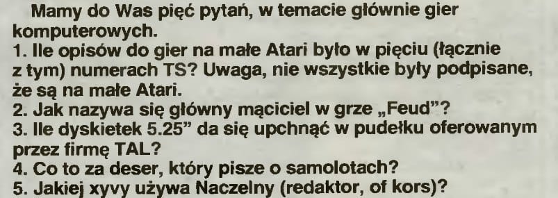 Ja natomiast mam z tym numerem cudne wspomnienia. Pojawił się tam opis F-19 (razem z klawiszologią). Miałem wtedy kolegę z własnym PC-tem do którego każdego dnia po szkole, z tym opisem wędrowałem. Wczuwaliśmy się niemiłosiernie. Niestety, wieczorem, gdy wracałem do domu, miałem do dyspozycji tylko F-15 na małe atari…
