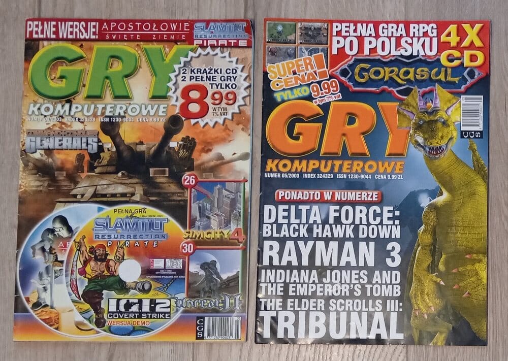 Przeglądam dwa numery Gier Komputerowych z I połowy 2003 roku. Numery o tyle ciekawe, że w tym okresie coraz mniej przypominające standardowe pismo, a coraz bardziej słynne „kioskówki” czyli tanie, popularne w latach 2000 serie wydawnicze (gra, tekturka i broszurka), kolportowane za pośrednictwem Ruchu i salonów prasowych. A przecież jeszcze parę lat wcześniej Gry Komputerowe było wypasionym, blisko 100-stronicowym magazynem, z liczną redakcją, masą rubryk i tekstów. A jak prezentował się w 2003 roku? Zobaczmy.