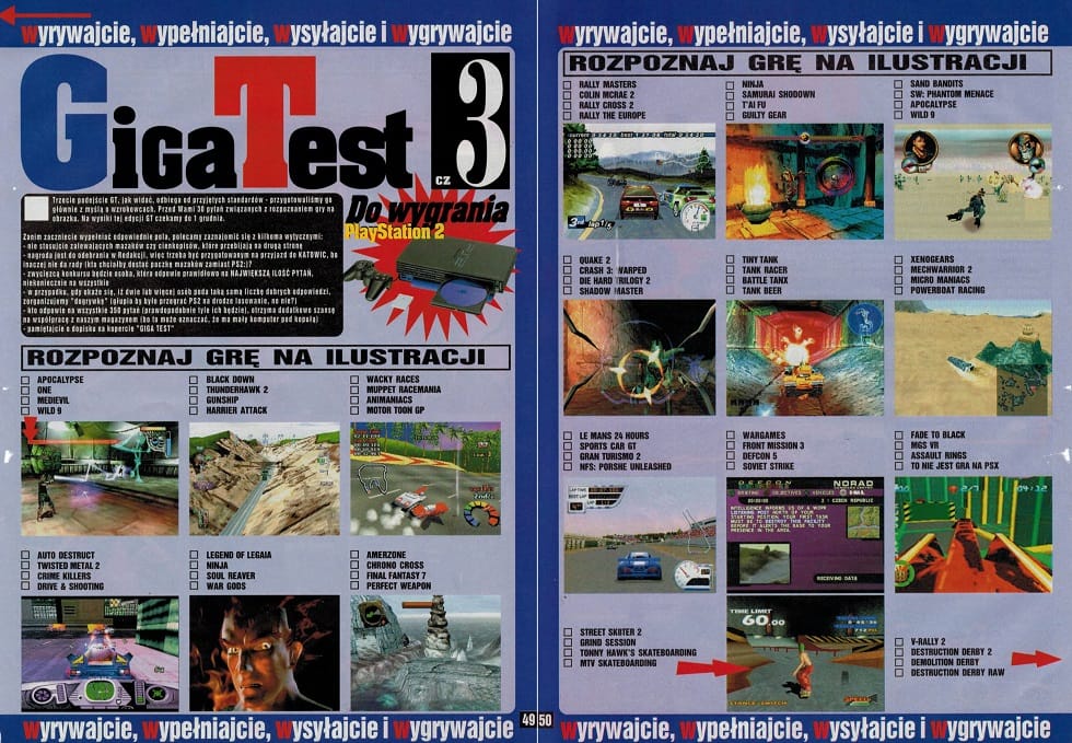 We wrześniu br. mija 25 lat od ogłoszonego w PSX Extreme nr 9/2000 (37) Giga Testu – konkursu wiedzy czytelników „szmatławca”. My tu na Zapachu Papieru mamy własny konkurs, ale pod względem liczby pytań nie dorastamy zg(red)om do pięt. Dość powiedzieć, że w ciągu pół roku zamieścili łącznie ponad 300 pytań, mających formę quizu (wśród kilku odpowiedzi należało zaznaczyć prawidłową). Mimo obiektywnych trudności (z netem szału nie było, głównym źródłem wiedzy byli kumple i pisma o ograch) udział w konkursie wzięło wielu śmiałków, bo nagroda była zacna – konsola PlayStation 2.