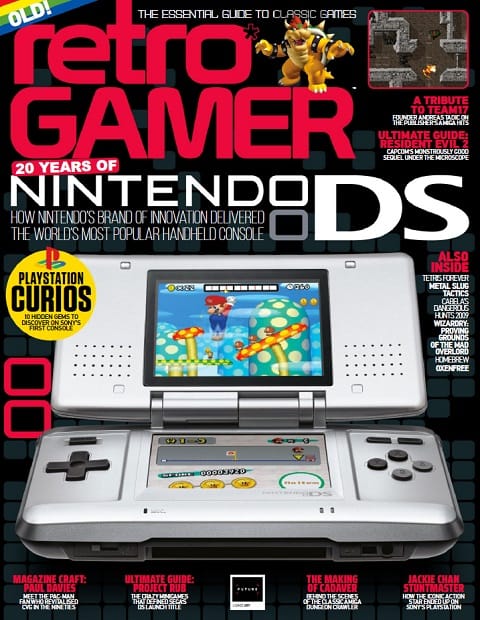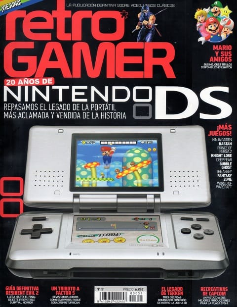 Będąc jakiś czas temu w Hiszpanii myszkowałem po tamtejszych salonikach prasy i w jednym z nich kupiłem hiszpańskojęzycznego Retro Gamera. Był to tegoroczny numer marcowy (całkiem świeży biorąc pod uwagę że magazyn wydawany jest kwartalnie), oznaczony numerem 51, liczący 148 stron i kosztujący 6,95 EUR. Na okładce srebrny NDS z hasającym Mario i informacją, że stuka 20 lat od debiutu kultowej konsolki. Okładka na tyle charakterystyczna, że postanowiłem odszukać jej angielski odpowiednik.