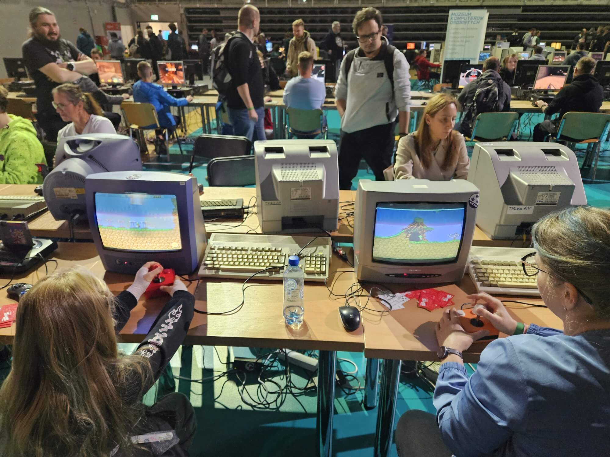 Tanim kosztem frytek połączonym ze złożeniem obietnicy lodów przebiliśmy się przez food trucki. Nie mogło być dalszych kompromisów – drugą w kolejności odwiedzoną strefą musiała być Arena Gier. Arena ta została naprawdę dobrze przygotowana – imponująco wyglądały przygotowane stanowiska z uruchomionymi grami na starych komputerach, było sporo osób, ale bez kolejek. Do wyboru, do koloru – Atari, Commodore, Amigi, Amstrady, stare konsole i klasyczne pecety czekały na chętnych. W pobliżu czuwała obsługa, udzielając pomocy, gdy ktoś się zaciął lub coś poszło nie tak i trzeba było nacisnąć konkretny klawisz.