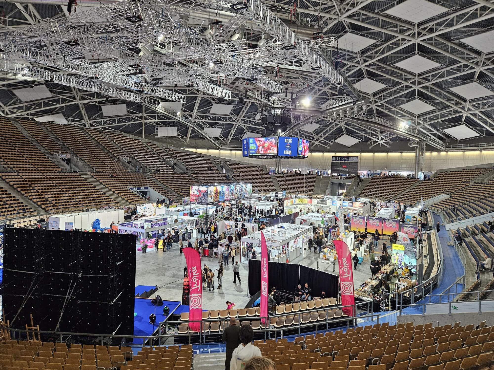 Na miejsce przybyliśmy chwilę po dziewiątej. Zaledwie po jednej nawrotce udało się nam trafić w zarezerwowany wcześniej parking. Po przyspieszonym przebiciu się przez kolejkę (tu podziękowania dla Pani Ochroniarz, która widząc zmarzniętego najmłodszego przemyciła nas bokiem) odebraliśmy wejściówki i pierwsze kroki skierowaliśmy do Atlas Areny. Mieściła się tam Arena Komiksu, jedna z trzech lokalizacji festiwalowych atrakcji, na co w biegu i pierwszej ekscytacji wejścia na wydarzenie nie zwróciliśmy początkowo uwagi.