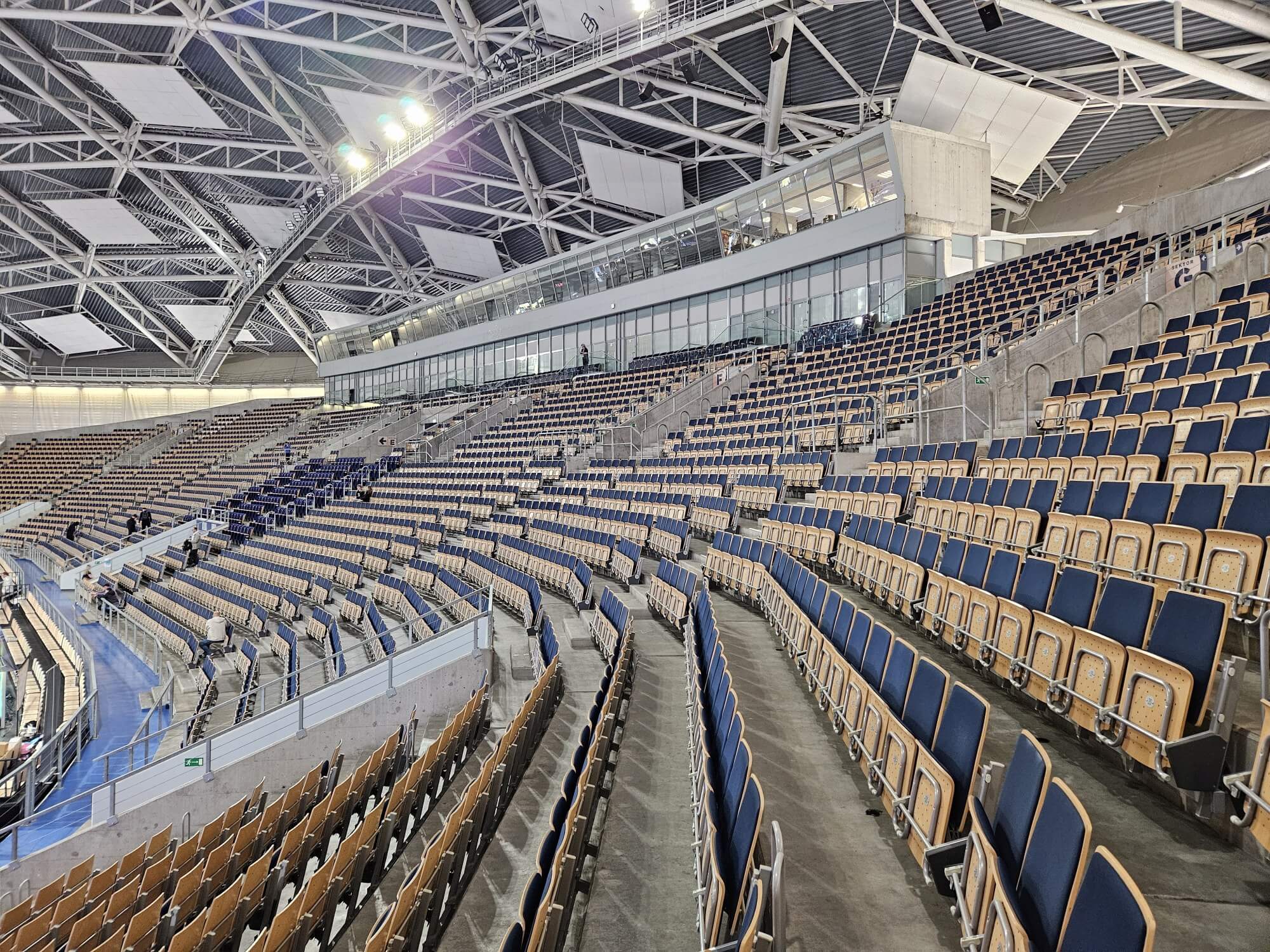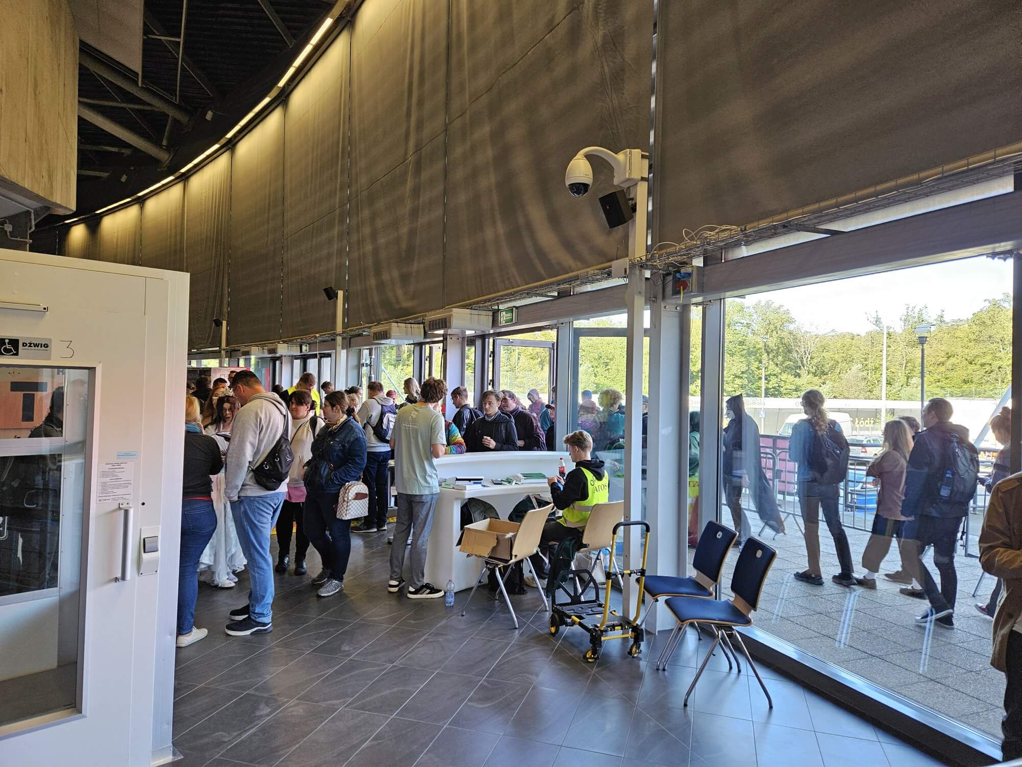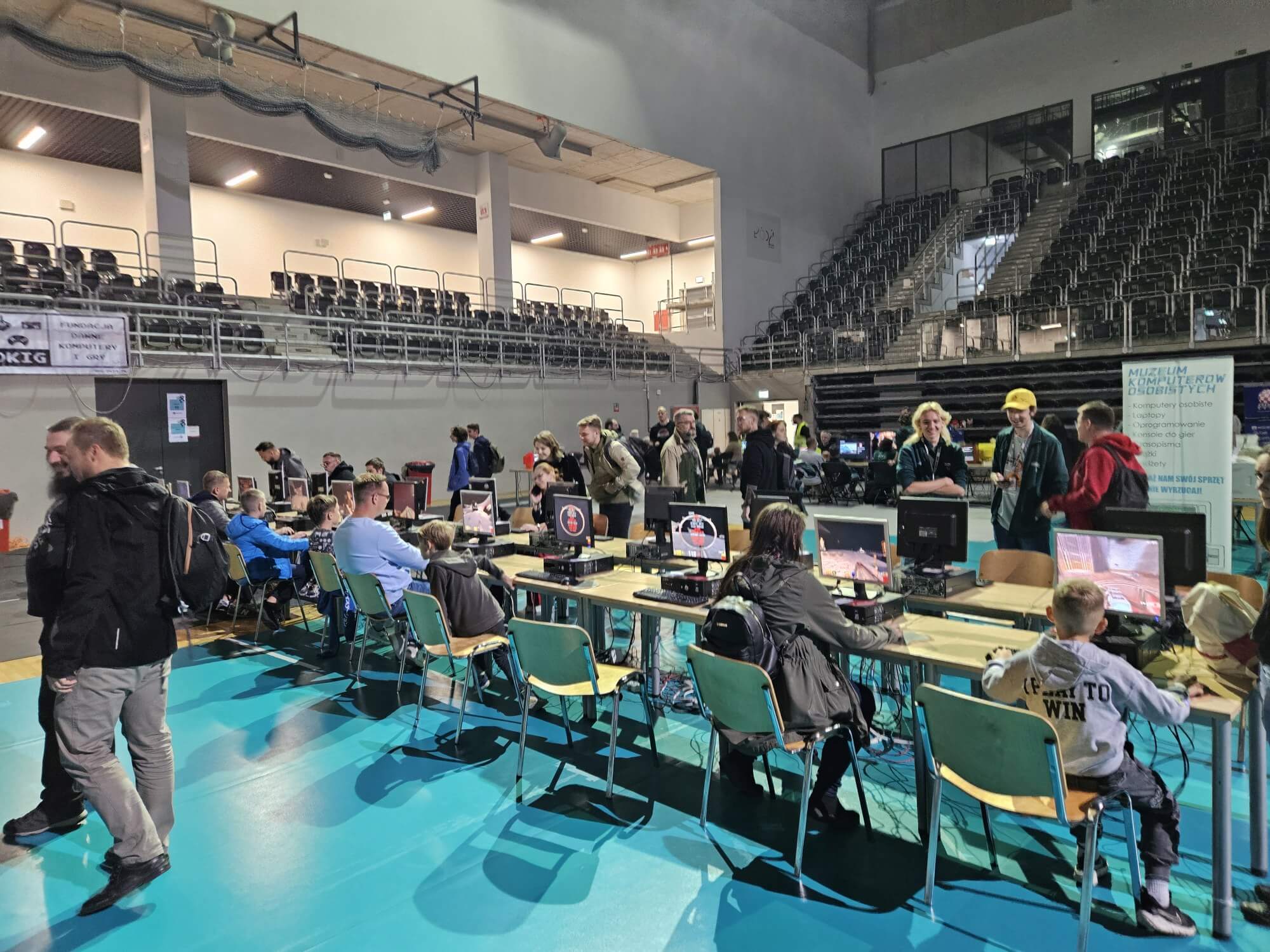Koniec języka za przewodnika (a wystarczyło wcześniej zapoznać się z mapą wydarzenia). Trzeci odpytany Pan Ochroniarz uświadomił nas, że przecież są 3 strefy/areny i każda jest w innej hali. A więc jest w sercach nadzieja – Arena Gier czeka na nas w Sport Arenie, a Arena Gier bez Prądu – na Stadionie Miejskim. Wyjaśniła się tym sposobem lokalizacja Sali F, w której koncentrowała się większość interesujących nas spotkań. Pytaliśmy o nią kilka razy na Atlas Arenie i nie uzyskaliśmy wcześniej prawidłowej odpowiedzi, desperacko krążąc wokół sal od A do E. Sala F nie znajdowała się bynajmniej tuż obok…