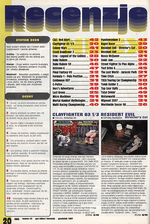 Na obszerności zyskuje Szkoła Przetrwania, w której tym razem znajdziemy poradniki do trzech gier. Odnotować należy także pojawienie się nowego działu poświęconego automatom, który na dzień dobry przedstawia czytelnikom trzy gry: Top Skater, The Lost World oraz House of the Dead. No dobra, opis Tekken 3 w poprzednim numerze też poniekąd bazował na wersji z automatów, ale tym razem dział zyskuje swoją identyfikację.