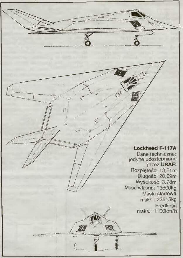 Mimo przedstawionych wątpliwości, historia samolotu jest dzisiaj już lepiej znana niż jego opis techniczny. Opiera się on w większości na oględzinach. Tak na przykład na podstawie wyglądu ruchomych części dysz wylotowych dyskutuje się, czy możliwa jest zmiana kierunku wektora ciągu silników. Jednak brak (zaobserwowanych) własności STOL (krótkiego startu i lądowania) i słaba zwrotność samolotu w powietrzu nie potwierdzałaby na razie tych przypuszczeń. Najciekawsze, choć też nie do końca poznane, są drogi realizacji koncepcji Stealth. Jedną z nich jest tragikomiczność kształtu F-117. Jednak jego doskonałość, nad którą pracowano tak długo, polega na tym, że nie jest on oparty o modelowane 'wycinki walca, kuli czy stożka, a więc brył, na których powierzchni zawsze znajdzie się punkt odbijający falę radarową pod kątem O*, która wróci do odbiornika radaru.