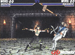 W MORTAL KOMBAT 4 każda z postaci może w dowolnym momencie wyciągnąć bron białą, a co więcej, posłużyć się nią. Okazuje się, że Johnny Cage z właściwą sobie wirtuozerią szlachtuje mieczem, zaś Raiden potrafi zza pleców wyciągnąć spory drewniany młot i przejechać nim po głowie nie spodziewającego się przeciwnika. Broń pojawia się w rękach zawodnika za pomocą odpowiedniej sekwencji przycisków – potem zaś, co nikogo nie powinno dziwić, zmienia się zestaw jego podstawowych ciosów. Co ciekawe, broń można przeciwnikowi wytrącić z ręki, a następnie podnieść ją i używać zamiast swojej! Broń W MORTAL KOMBAT… czyżby ukłon autorów w stronę modnych obecnie trendów (SOUL BLADE, LAST BRONX)? To bardzo możliwe, ponieważ jest to najbardziej niedopracowany element w MK4, którego z powodzeniem mogłoby nie być. Po kilku pojedynkach gracze zapominają o możliwości wyciągnięcia śmiercionośnych zabawek i koncentrują się raczej na czystej walce. Być może wynika to ze specyfiki grania w salonach – w końcu szkoda pieniędzy na eksperymentowanie. Miejmy nadzieje, że ta część gry zostanie dopracowana w wersji konsolowej.