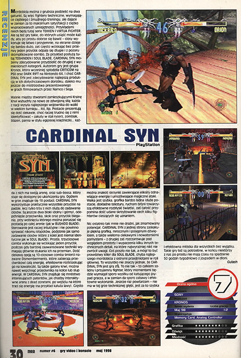 Jak już jesteśmy przy zapowiedziach to warto zauważyć, że w poprzednich numerach teksty z tego działu były raczej skromne objętościowo i wielokrotnie ograniczały się do jednej trzeciej strony. W tym wydaniu tylko World Cup ’98 ma dla siebie pół strony. Reszta tytułów to przynajmniej całostronicowe teksty, a i dwustronicowe się trafią. Jest obficiej.